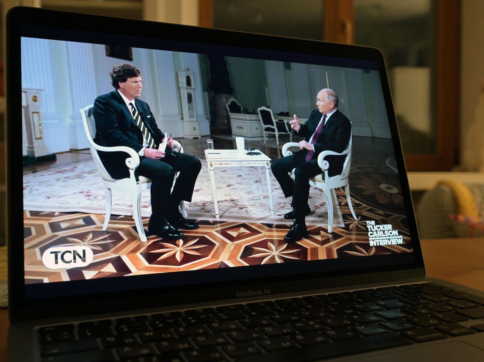 المقابلة التي أجراها الرئيس الروسي فلاديمير بوتين مع الصحفي الأمريكي تاكر كارلسون على منصة التواصل الاجتماعي وحصدت ملايين المشاهدات حتى الآن.