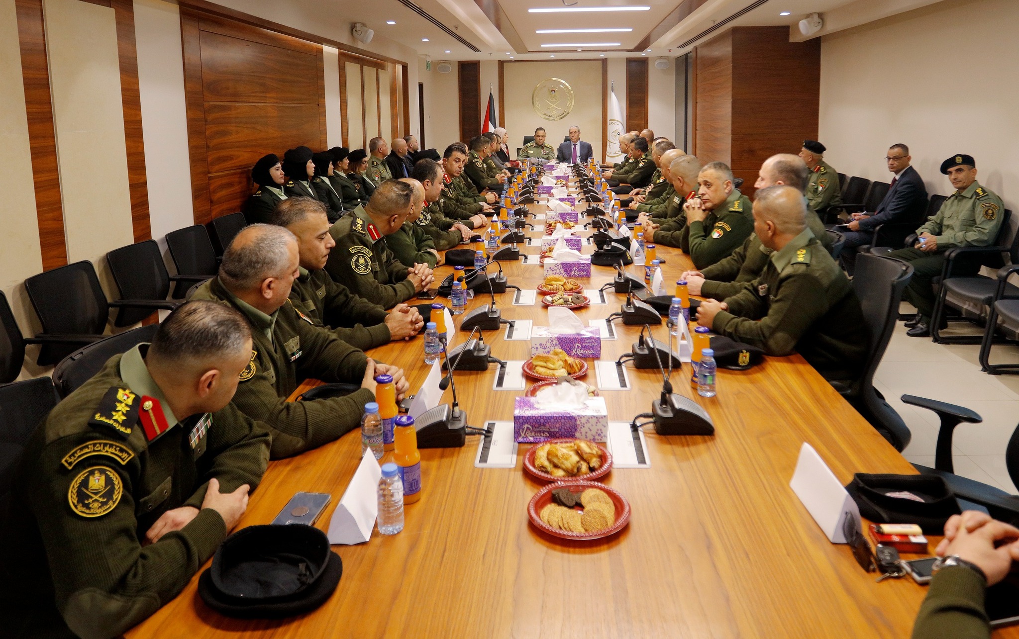 زار نائب رئيس دولة فلسطين حسين الشيخ، اليوم الأحد، مقر جهاز المخابرات العسكرية الفلسطينية في مدينة رام الله. والتقى سيادته قائد الخدمة اللواء محمد الخطيب “نضال شاهين”، بحضور عدد من كبار الضباط ومدراء الدوائر والدوائر، بمشاركة محافظ رام الله والبيرة ليلى غانم. وشدد الشيخ خلال اللقاء على أهمية ترسيخ سيادة القانون وتعزيز احترام كرامة المواطن، مشيداً بالدور الوطني والمهني الذي يقوم به جهاز المخابرات العسكرية في هذا الإطار إلى جانب باقي الأجهزة الأمنية، بما يسهم في حفظ الأمن والاستقرار وتعزيز السلم المدني. وثمن الشيخ الدور الذي يقوم به جهاز المخابرات العسكرية في الاستجابة السريعة لمتطلبات العمل، في تحصين المؤسسة الأمنية، مؤكدا أهمية دوره الرقابي وفق القوانين والأنظمة المعمول بها، بما يعزز كفاءة الأداء الأمني ويحفظ المصلحة الوطنية العليا.