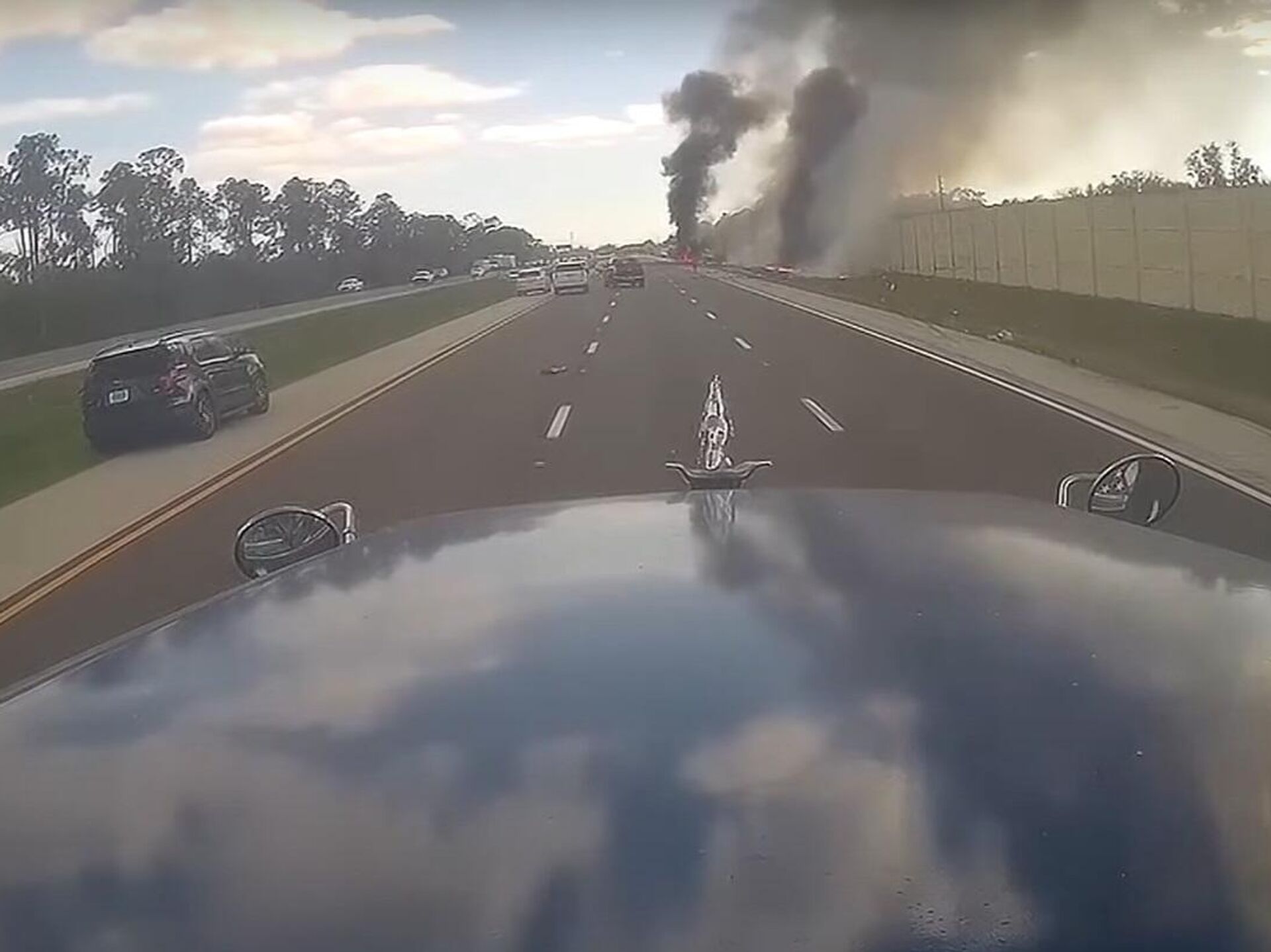 وقال شاهد عيان إن الطائرة اصطدمت بجزء علوي من شاحنة قبل أن تصطدم بجدار وتشتعل فيها النيران.