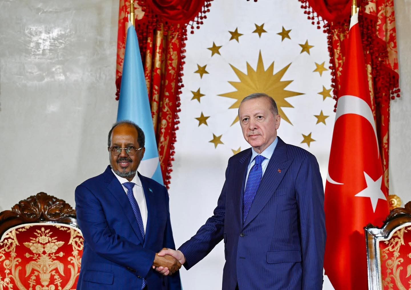 اسطنبول/ مقديشو برس – عقد رئيس جمهورية الصومال الفيدرالية حسن شيخ محمود، الخميس، قمة ثنائية مع نظيره التركي رجب طيب أردوغان في قصر دولمة بهجة بإسطنبول، لبحث سبل تعزيز التعاون بين البلدين. وبحسب بيان صادر عن الرئاسة الصومالية، تناولت القمة تطوير العلاقات الثنائية، خاصة في المجالات الأمنية والاقتصادية والتنمية، بالإضافة إلى استعراض نتائج الشراكة الاستثمارية بين الصومال وتركيا التي شهدت تقدما ملحوظا في السنوات الأخيرة. وأعرب الرئيس الصومالي عن تقديره للدور الذي تلعبه تركيا حكومة وشعبا في دعم جهود إعادة بناء مؤسسات الدولة الصومالية، خاصة في مجالات البنية التحتية والخدمات العامة وتعزيز الأمن. كما أكد الجانبان أهمية توسيع الشراكة الاستراتيجية بين البلدين، مؤكدين استمرار التنسيق والتعاون بما يخدم المصالح المشتركة، فيما رحبا ببدء خطوات استغلال الموارد النفطية في الصومال، بعد وصول سفينة التنقيب إلى البلاد.