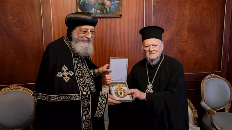 التقى قداسة البابا تواضروس الثاني بعد ظهر اليوم بأعضاء اللجنة السينودسية للحوار بين المسيحيين والأديان بمقر البطريركية المسكونية. وتضمن اللقاء جلسة أولى التقى خلالها قداسة البابا والوفد المرافق لقداسته مع قداسة البطريرك برثلماوس الأول بطريرك القسطنطينية. وفي الختام تم تبادل الهدايا التذكارية بين قداستهما. ثم عقدت الجلسة الثانية مع نيافة الأنبا دانيال خلقيدونية رئيس لجنة الحوار بين المسيحيين والأديان وأعضاء اللجنة. وسبق الجلستين مأدبة غداء أقيمت على شرف قداسة البابا في مقر البطريركية. بدأ قداسة البابا تواضروس الثاني، أمس السبت، جولة خارجية جديدة تشمل أربع دول. بدأ بزيارة إلى تركيا حيث التقى قداسة البطريرك المسكوني برثلماوس الأول بطريرك القسطنطينية. وهذا هو أول لقاء رسمي بين بابا الإسكندرية وبطريرك القسطنطينية. وحضر القداس البطريركي صباح اليوم، وبعد ذلك تم تبادل الكلمات الرسمية بين قداسته وقداسة البطريرك المسكوني.
