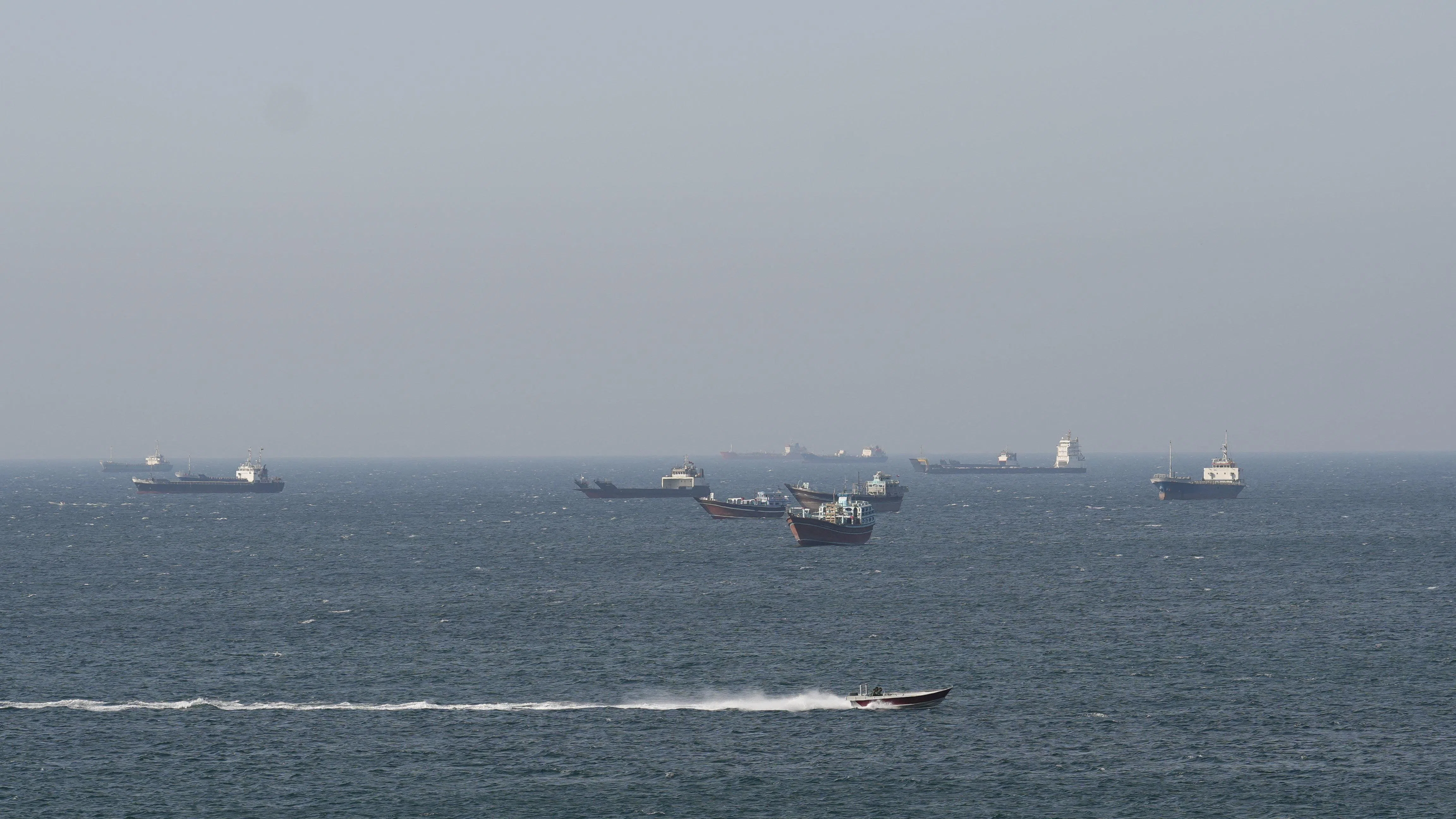 سفن وناقلات في مضيق هرمز قبالة سواحل مسندم بسلطنة عمان في 18 أبريل.
